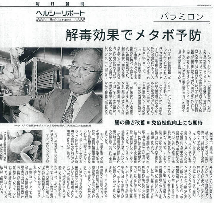 平成22年4月28日の毎日新聞朝刊に、パラミロンについての記事が掲載されました。